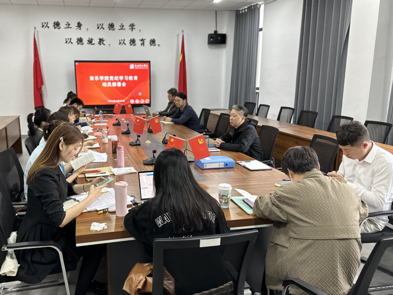 4月29日上午,音乐学院召开党纪学习教育动员部署会议。会议由音乐学院党总支书记、院长李伟主持,各党支部书记、各教研室主任、所有行政工作人员参加,两名党外人士列席。