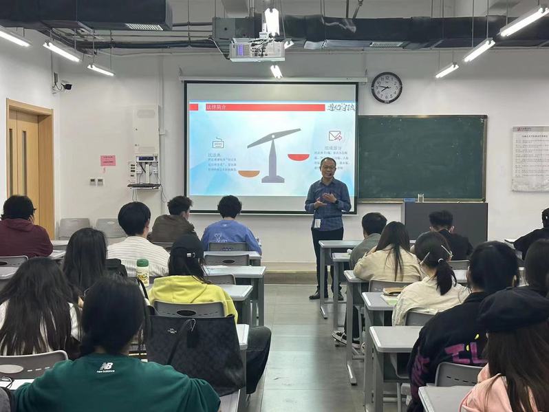 胡克春主要围绕民法典是什么、民法典如何保护我们、民法典对劳动者的保护等内容进行解读,结合具体案例开展释法说理。针对当前校园欺凌、套路贷、就业歧视、拖欠工资、职场性骚扰等社会热点焦点问题,普及相关法律知识;通过案例分析,教导同学们学会用法律知识武装头脑、明辨是非,自觉远离不良行为。本次授课内容丰富,选用案例精准,进一步凸显了学法懂法、知法守法、自我保护的重要性,并为同学们使用法律手段维护自身合法权益提供了经验借鉴。