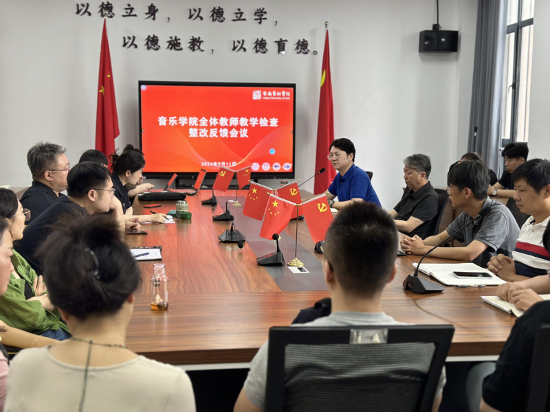9月14日12:30,音乐学院在音乐南楼104会议室召开教学检查反馈会议。会议由音乐学院党总支书记、院长李伟主持,学院副院长张祖顺主要汇报,教务处副处长、评建办副主任郭强参会指导。