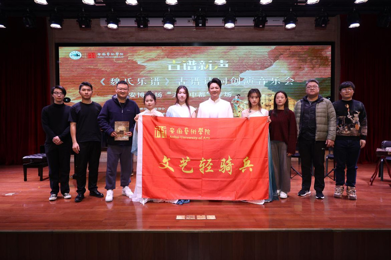 11月23日,音乐学院副院长张祖顺带领音乐学院师生,在安徽博物院举办了“古谱新声”——《魏氏乐谱》古谱诗词创演音乐会。本次音乐会通过创新性的编排,将古谱音乐与历史文化完美融合,结合沉浸式展览体验,让观众穿越古今,挖掘古代文化瑰宝的当代价值,展现明代音乐“真古董”——“明乐遗存”的独特魅力。