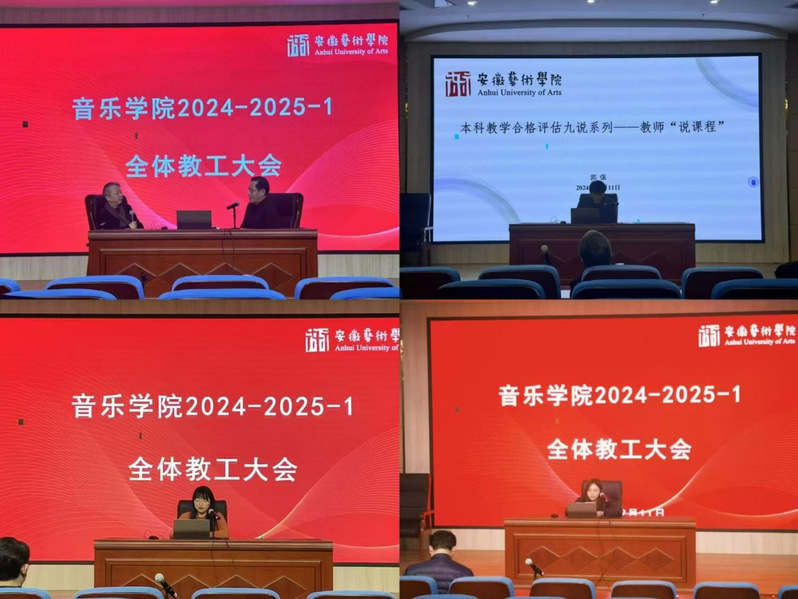 2024年12月4日与11日下午,音乐学院在学术报告厅开展“九说”系列之“说课程”教研活动。该活动历时两周,在教研室内部首轮“说课”基础上,在全院范围开展覆盖全体教师的深度研讨,全力备战本科教学合格评估工作。