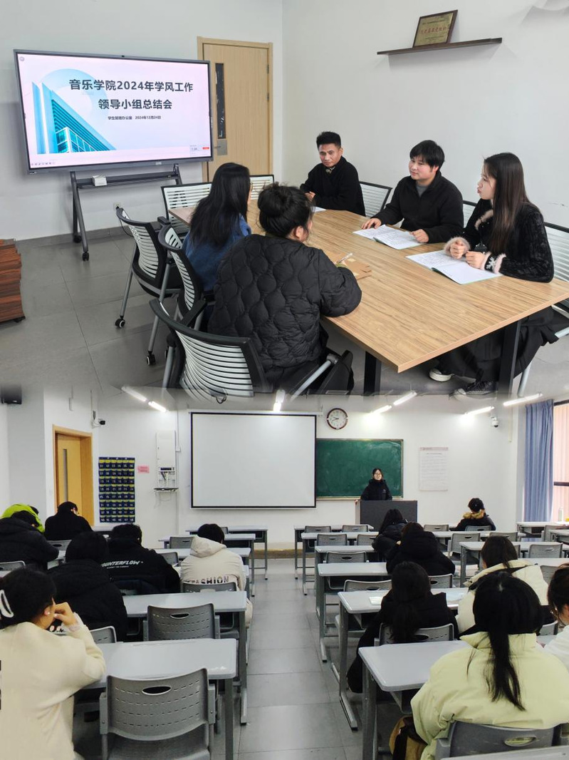 12月24日,学院召开2024年学风工作领导小组会议,学院党总支副书记李传兴对学院学风工作作出重要部署,要求各年级辅导员、班主任深入班级、宿舍,召开诚信教育主题班会,传达诚信考试理念并签署《诚信考试承诺书》。12月25日上午,学院开展诚信考试主题班会,并邀请2024年度国家奖学金获得者2022级作曲专业郭芳同学为大一新生做典型案例宣讲,郭芳鼓励同学们要认真复习,诚信考试,争取在更大的舞台展现自己的风采。
