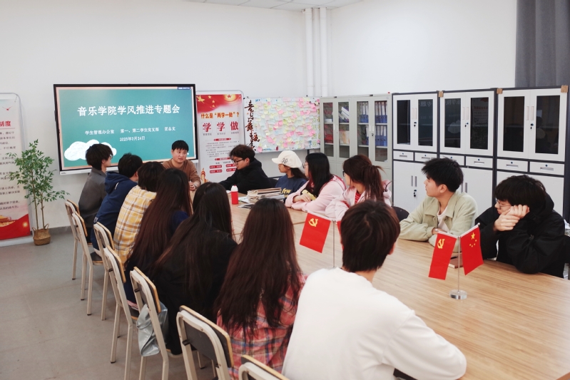 2025年3月24日,音乐学院学生管理办公室联合学生党支部、团总支在音乐南楼105会议室召开学风推进专题会。本次会议旨在进一步加强学风建设,提升学生自我管理能力,营造良好的学习与生活环境。各班党员代表、团员代表和班干代表等共计30余人参加了会议。