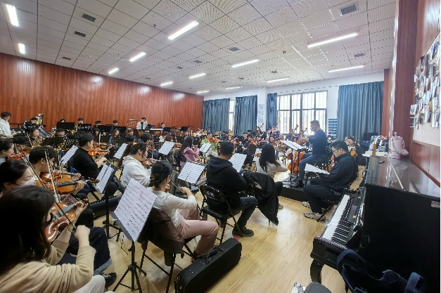 3 月 27 日下午,在音乐南楼 302 排练厅,原创作品《大别山交响曲》系列活动——第三乐章作品联排圆满举行。此次活动特邀《大别山交响曲》作曲家,星海音乐学院作曲系教师,博业体育(中国)官方网站-登录入口外聘教师胡蘅鸾全程参与指导。