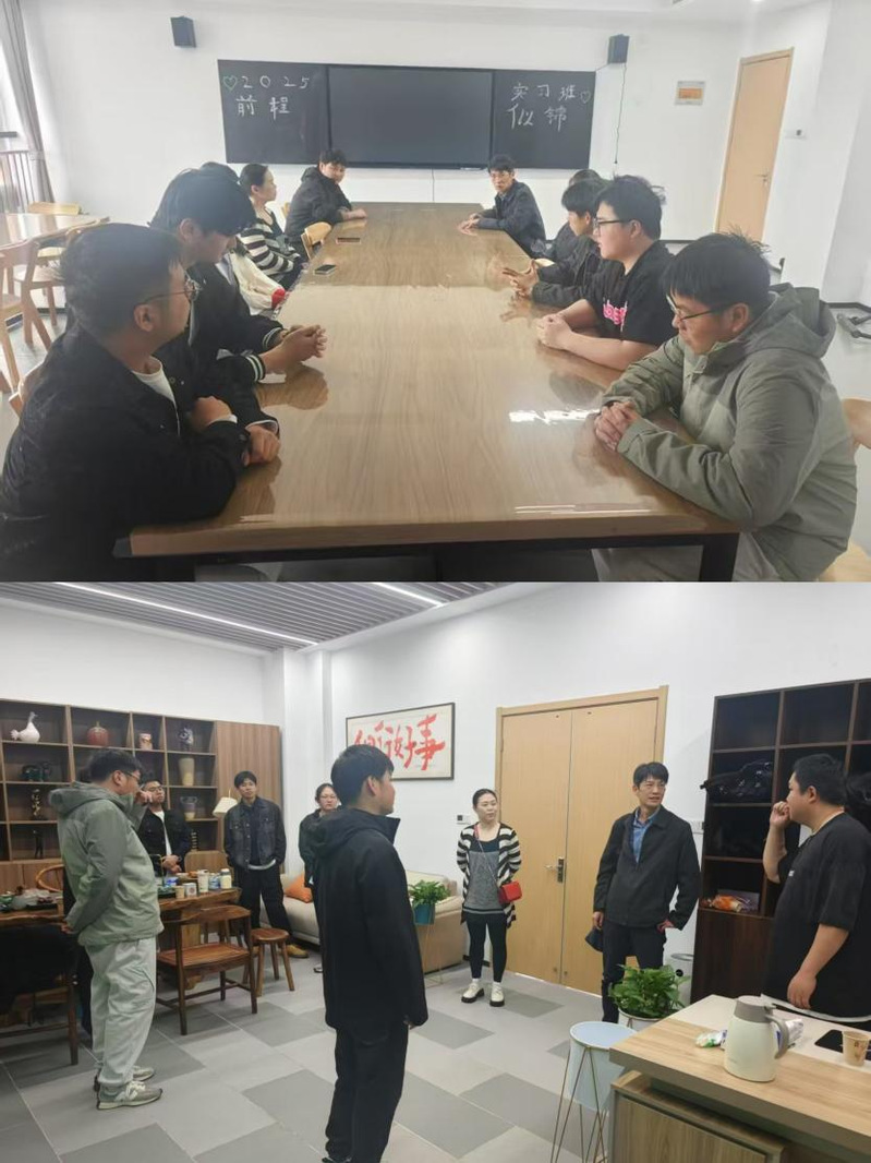 郭强在安徽贤雅缘文化传媒有限公司对实习生的日常生活给予了亲切问候,倾听实习生分享实习感悟与反馈时,鼓励毕业生适应角色转换、积累工作经验、明确职业定位与规划未来,在实习工作中不断完善毕业论文,为实习之旅收官。