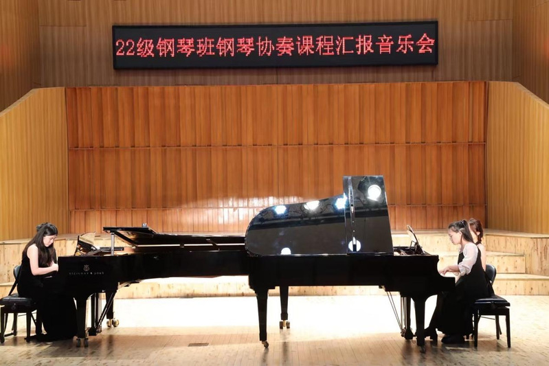 此次汇报演出不仅是对学生阶段性学习成果的检验,更是一次钢琴教学创新实践的生动展示。通过双钢琴这一独特的合作形式,学生们突破了个人演奏的局限,在声部交织与默契对话中领悟到音乐协作的深层魅力,更在实践中锤炼出精益求精的艺术品格。未来,我们将继续以实践教学为抓手,深化音乐教育改革,探索多元化人才培养路径。