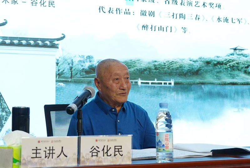 下午,安徽省徽京剧院一级演员、徽剧国家级非物质文化遗产传承人谷化民老师带来《徽剧唱腔——拨子、吹腔》课程。
