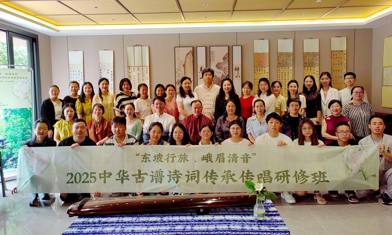 2025年7月16日至20日,“东坡行旅·峨眉清音”2025中华古谱诗词传承传唱研修体验营成功举办。中心主任张祖顺受邀担任讲授专家,中心科研秘书、《古谱诗词创演策划》课程教师谢潘婕参研学习。