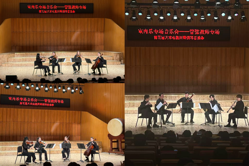 演出形式丰富多样,弦乐四重奏与管乐重奏联袂呈现。曲目编排融贯东西,既有《梁祝》“化蝶”选段的婉转缠绵与《赛马》的奔放热烈,亦不乏莫扎特《魔笛序曲》的轻快灵动,充分展现了教师在作品诠释、风格把握与舞台协作方面的专业素养与艺术风采。