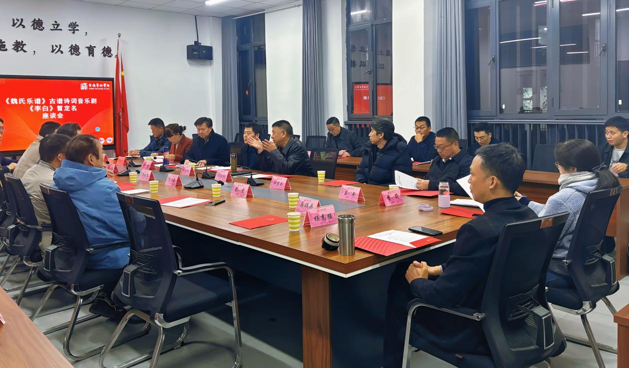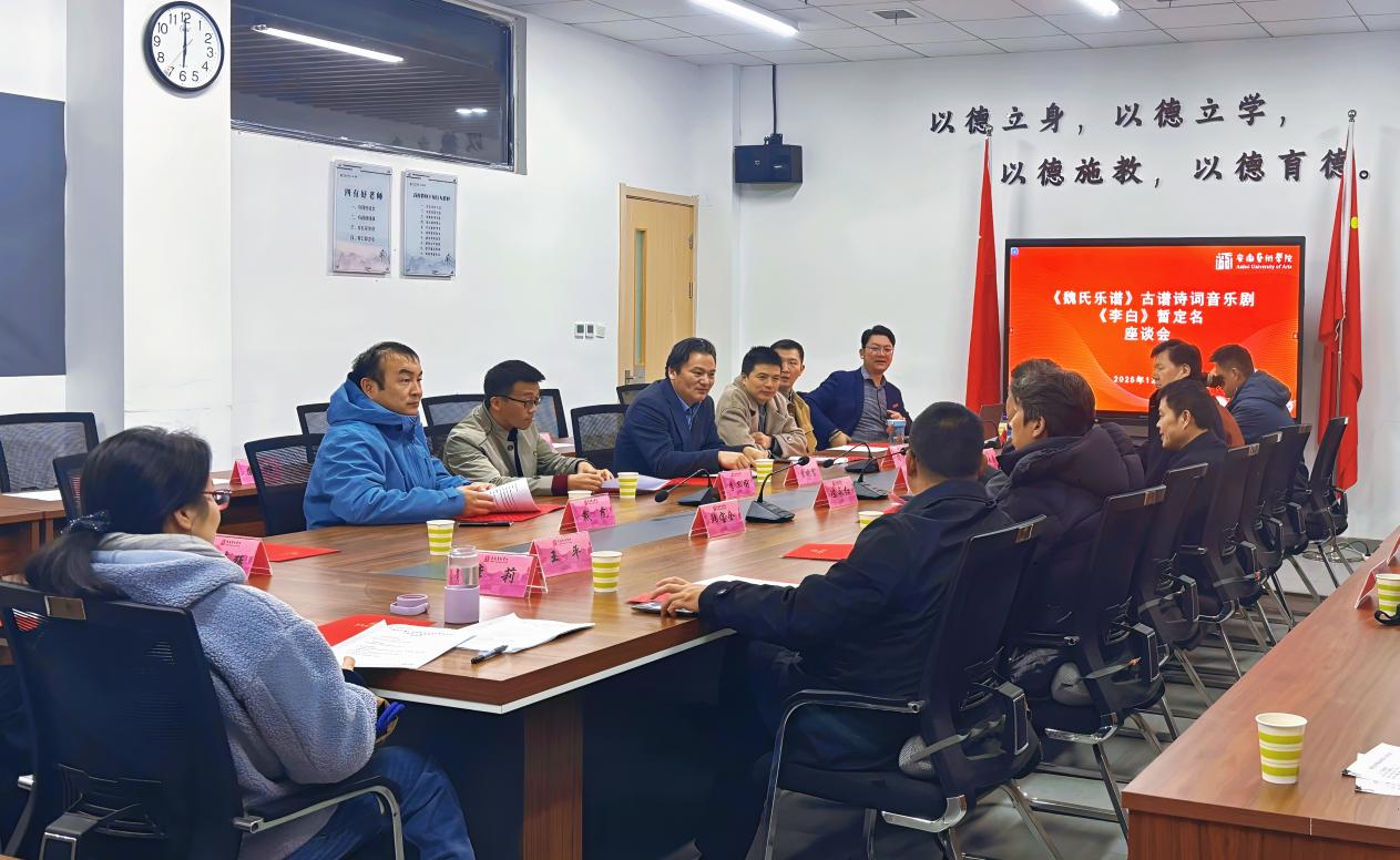 座谈会在博业体育(中国)官方网站-登录入口音乐南楼104会议室举行。项目负责人张祖顺率先介绍了音乐剧《李白》的创作思路、实施路径、宣发设计以及备演情况。马鞍山市艺术剧院副院长江辰、马鞍山市文旅局党委委员兼市文化馆馆长周霍祁、马鞍山市人大常委会教科文卫工委副主任吴大巢、马鞍山市文联党组书记李莉、马鞍山市委宣传部副部长兼市委网信办主任齐道明、马鞍山市委宣传部常务副部长王平以及中国歌剧舞剧院导演(舞剧《李白》导演韩宝全),均对该剧给予了高度评价,并围绕审看内容提出了建议。陈永红部长对该剧高度认可,认为其超出了预期效果,同时在戏剧结构、在地化诗词元素融合以及艺术疗愈价值探索等方面给出了指导意见。曹晓富副校长对马鞍山方面一行表示热烈欢迎,称赞音乐学院、戏剧学院和舞蹈学院协同合作打造出了高水平艺术作品,肯定了校地合作推动科研成果转化以服务社会的成效,并督促音乐剧《李白》剧组精心打磨作品,为马鞍山市民奉献一场精彩演出。