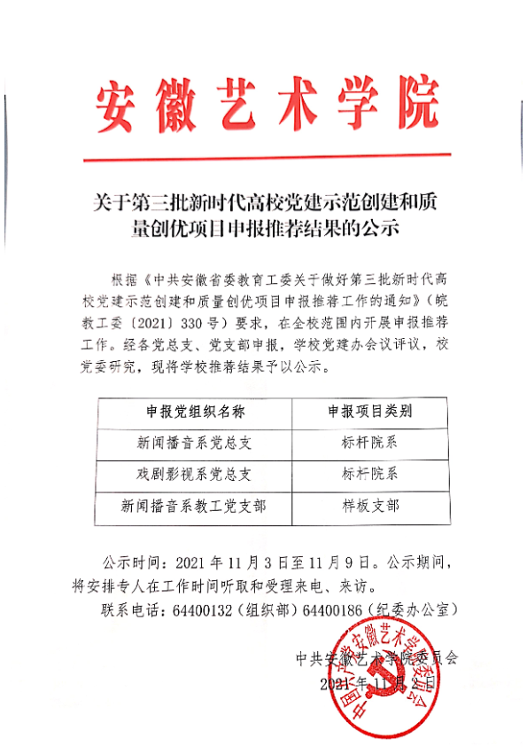 关于第三批新时代高校党建示范创建和质量创优项目申报推荐结果的公示