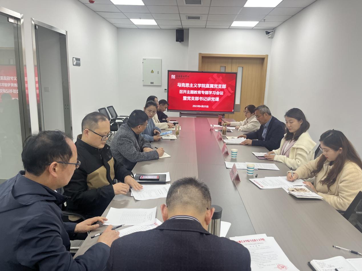 根据马院直属党支部主题教育工作安排,4月25日中午,马克思主义学院直属党支部在综合楼721会议室召开主题教育第一次专题学习会议暨党支部书记讲党课会议。校党委巡察组成员赵晨、张娜娜旁听列席。大会由马克思主义学院直属党支部书记吴孔铎主持。