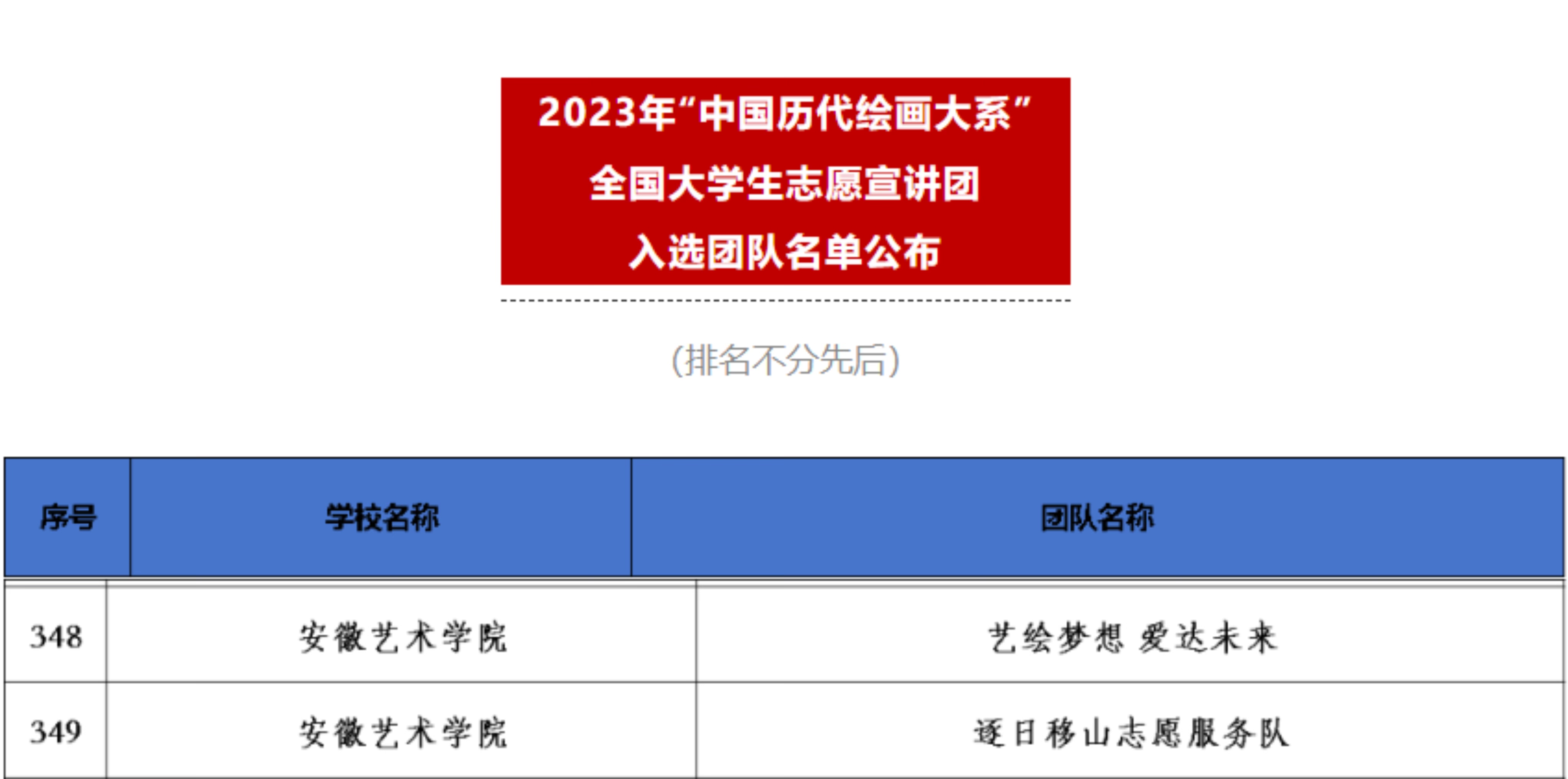 日前,由团中央青年志愿者行动指导中心、教育部中外语言交流合作中心、中国外文局文化传播中心、浙江大学、中国文物报共同开展的2023年“中国历代绘画大系”全国大学生志愿宣讲团名单公布,我校“艺绘梦想 爱达未来”、逐日移山志愿服务队成功入选。