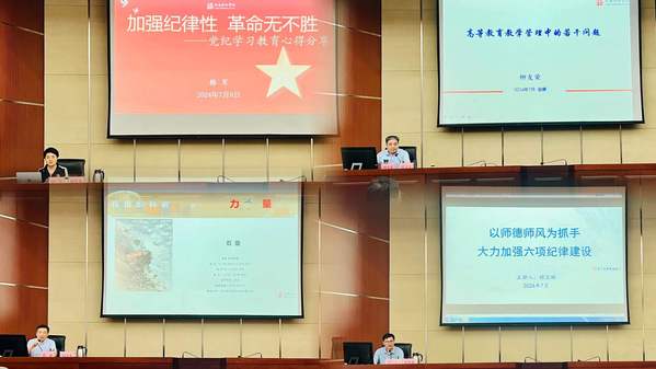 党委委员、纪委书记、监察专员程宗林秉持问题导向,结合习近平总书记提出的“四有”好老师、“四个引路人”、大先生、教育家精神等关键词,解读中央及省厅各类师德师风政策文件,明确师德师风的规定、要求和建设途径,继而紧扣师德师风,对六项纪律建设做详细探讨。