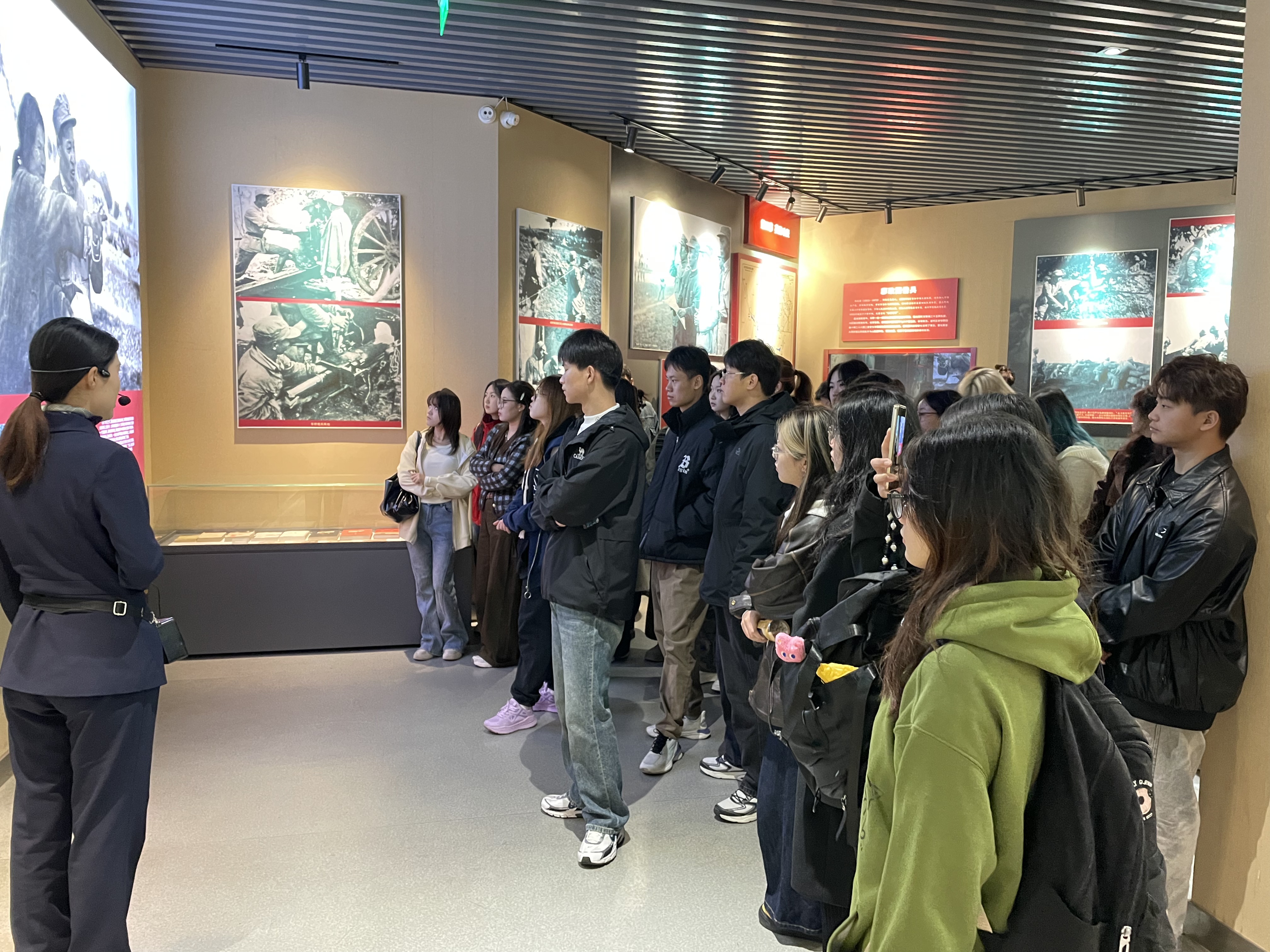 参观过程中,带队教师们结合专业知识,引导学生从艺术的角度去感受和理解纪念馆中的陈列展示;鼓励大家思考如何通过绘画形式更好地展现革命历史和英雄人物,将专业知识和社会实践相融合、红色文化与美术创作相结合,激发大家的创新思维和创作灵感,创作出具有思想深度的艺术作品。